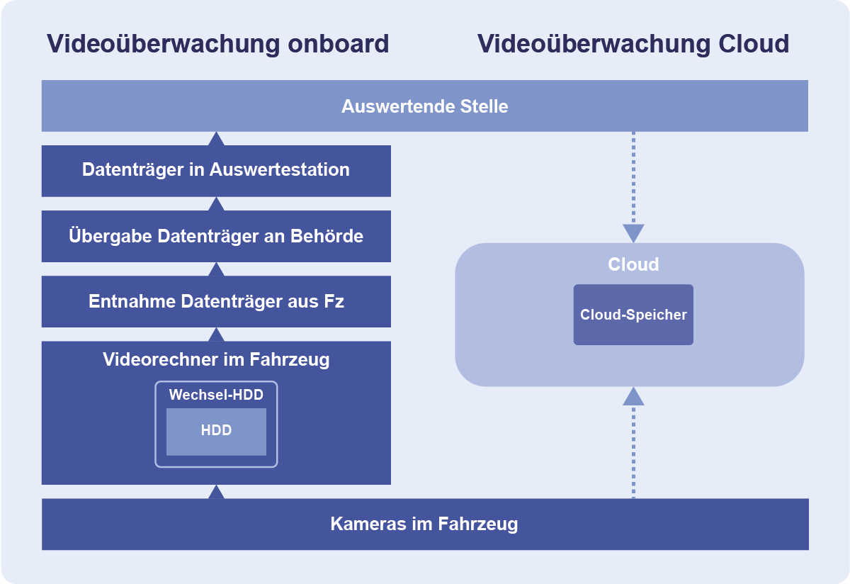 Dank der Cloud-Lösung reduzieren sich bei einem Vorfall die Reaktionszeit und der Aufwand für die Auswertung auf ein Minimum. Bisher war es erforderlich, den Datenträger mit dem aufgezeichneten Videomaterial vor Ort aus dem Fahrzeug zu entnehmen und der auswertenden Stelle zu übergeben. Mit der Cloud-Lösung entfällt dieser aufwändige Vorgang vollständig. Das Verkehrsunternehmen kann den Ermittlungsbehörden einen gesicherten, temporären Zugang zur Plattform gewähren. Für die Auswertung werden die Videoaufzeichnungen zum Zeitpunkt des Vorfalls über eine verschlüsselte Verbindung direkt von den Fahrzeug-Kameras in die Cloud übertragen. Das Fahrzeug bleibt währenddessen in regulärem Betrieb und steht der Disposition weiterhin zur Verfügung.